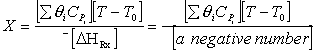 A. For an exothermic reaction, is negative ΔHRX(-),[ e.g., ΔHRX= -100 kJ/mole A]