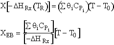 B. For an endothermic reaction,ΔHRX is positive (+), XEB increases with decreasing T.