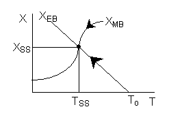Both the mole and energy balances are satisfied when XMB=XEB. The steady state temperature and conversion are TSSand XSS respectively for an entering temperature TO.