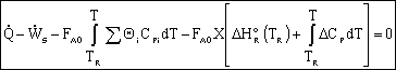 We need to put the above equation into a form that we can easily use to relate X and T in order to size reactors. To achieve this goal, we write the molar flow rates in terms of conversion and the enthalpies as a function of temperature. We now will "dissect" both Fi and Hi.