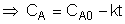 Consider the following reaction that occurs in a constant volume batch reactor: (We will withdraw samples and record the concentration of A as a function of time.
