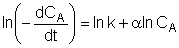 Taking the natural log of The reaction order can be found from a ln-ln plot of: