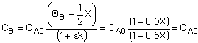 And if the feed is equal molar, then: This leaves us with CA as a function of conversion alone: Similarly for CB: