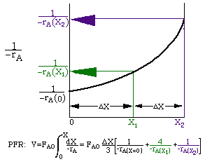 The integral to calculate the PFR volume can be evaluated using a method such as Simpson's One-Third Rule (pg 925):