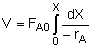 Given -rA as a function of conversion, one can size any type of reactor. The volume of a PFR can be represented as the shaded area in the Levenspiel Plot shown below.