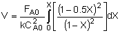 Algorithm Steps Polymath Equations Mole Balance d(X)/d(V) = -rA/FA0 Rate Law rA = -k*((CA**2)-(CB/KC)) Stoichiometry CA = (CA0*(1-X))/(1+eps*X) CB = (CA0*X)/(2*(1+eps*X)) Parameter Evaluation eps = -0.5 CA0 = 0.2 k = 2 FA0 = 5 KC = 100 Initial and Final Values X0 = 0 V0 = 0 Vf = 500 Polymath Screen Shots