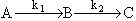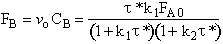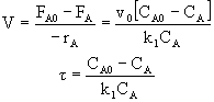 For the elementary reactions:with k1=.1 s-1 and k2=.2 s-1 with CAO= 2 mol/dm3. Plot the concentration of B and selectivity of B to C as a function of space time in a CSTR.