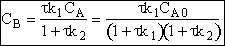 For the elementary reactions:Solutionwith k1=.1 s-1 and k2=.2 s-1 with CAO= 2 mol/dm3. Plot the concentration of B and selectivity of B to C as a function of space time in a CSTR.