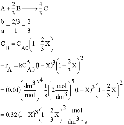 only in terms of conversion. The feed to the batch reactor is equal molar A and B with CA0 = 2 mol/dm3 and kA= .01 (dm3/mol)41/s.