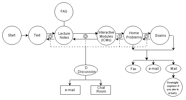 One easily solved barrier related to the web page. The course web page has links to the overall chemical reaction engineering home page, which we initially suggested they visit frequently. The problem was that students using a modem were having problems listening to the audio files, as they were rather large to download (about one megabyte each). To compensate for this, we supplied students with the updated CD containing audio files, which removed the bottleneck (download time) from the studying and learning process. We also made the asynchronous learning course home page very easily downloadable, with no large image files.