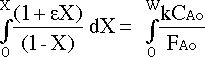 which can be integrated from X=0 when W=0 to X=X when W=W :