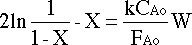 Simplifying, we get a CSTR design equation with respect to catalyst weight instead of volume: