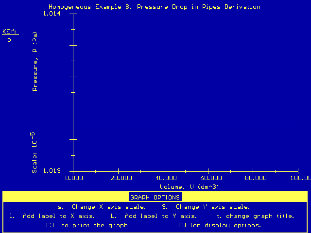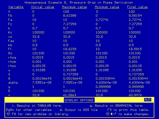 As you can see, the pressure (denoted by the variable P) did not vary substantially. This supports our previous assumption that the pressure drop for gases flowing through pipes (without packing) can be neglected.