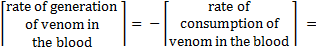 The terms on the right hand side are the rates of generation of venom (which will be negative since venom is being consumed and excreted) in reactions 1, 3, 5 and 7 respectively.