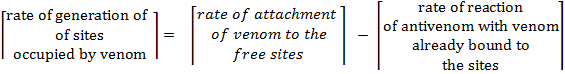 The terms on the right hand side are rates of generation of sites occupied by venom in reactions 1 and 4 respectively.