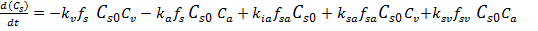 Combining the batch reactor design equation (equation E-4) with the material balance (equation E-33)and rate laws (equations E-34 to E-37) gives us the governing equation for the concentration of free sites in the blood.