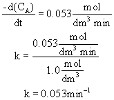 is carried out in a constant volume batch reactor. Determine the reaction order and specific reaction rate from the following data.