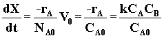 Determine the minimum number of batch reactors 1.0 cubic meter in size to produce 10,000 moles of C in a 300 day period. The processing time to fill, empty and clean the reactor between batches is 4.5 hours. The feed is equal molar in A and B and the initial concentration of A is 1.0 moles per cubic meter. In a trial run it was found that 50% conversion was achieved in 2 hours. | ||