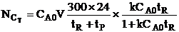 The total processing time, tP, between reactions is tP, = 4.5 hrs. How many 1 m3 reactors do you need to make 10,000 moles of C in 300 days? Consider a single reactor. The number of moles of C formed in one batch | ||
