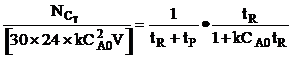 The total time for carry out one batch t is the reaction time tR plus the processing time tP which is the sum of the times to empty, te, to clean, tclean, and to fill, tf | ||