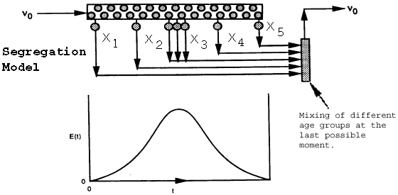 Models the real reactor as a number of small batch reactors, each spending a different time in the reactor. All molecules that spend the same length of time in the reactor (i.e., that are of the same age) remain together in the same globule (i.e., batch reactor). Mixing of the different age groups occurs at the last possible moment at the reactor exit.