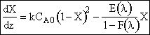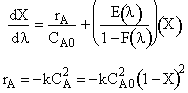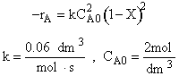One notes a slight difference between the conversion predicted by the software solution (X = 0.69) and that predicted by the backward integration using the very approximate Euler method. We would have achieved closer agreement if we had chosen a small step size, especially at the beginning.