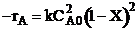 Determine the minimum number of batch reactors 1.0 cubic meter in size to produce 10,000 moles of C in a 300 day period. The processing time to fill, empty and clean the reactor between batches is 4.5 hours. The feed is equal molar in A and B and the initial concentration of A is 1.0 moles per cubic meter. In a trial run it was found that 50% conversion was achieved in 2 hours. | ||