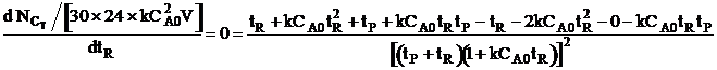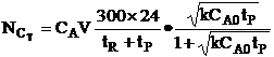 The total time for carry out one batch t is the reaction time tR plus the processing time tP which is the sum of the times to empty, te, to clean, tclean, and to fill, tf | ||