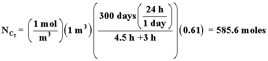 Total number of C moles made in one reactor for a 24 hour work day over 300 days is | ||