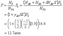 Parameter Evaluation | CAo=0.2, v=vo=25 dm3/s, k=10 dm6/mol2 s, e=-0.5, X=0.9 |