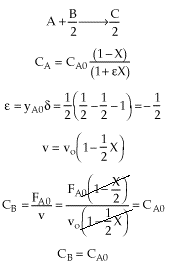 Stoichiometry | gas phase, isothermal (T = T0), no pressure drop (P = P0), CAo=CBo (Q=1), v=vo(1+eX) |