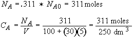 b) Obtain an analytical solution for the number of moles of A, NA and the concentration of A, CA, as a function of time. What is the concentration of A and of H2SO4 after 30 minutes?