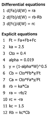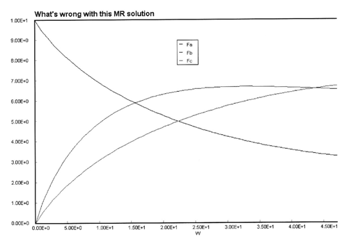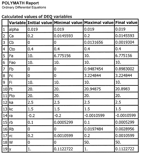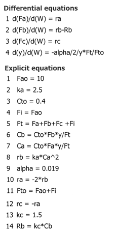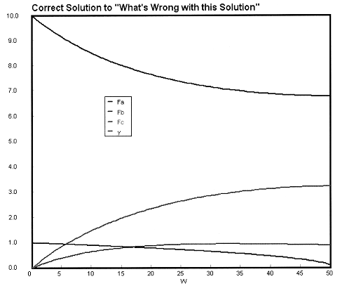 is carried out in a membrane reactor in which there is pressure drop with α = 0.019 kg-1. An equal molar feed of A and inerts, I, enter the reactor and only species B can exit the membrane. Plot the conversion of A down the membrane reactor containing 50 kg of catalyst. The specific reaction rate is kA = 2.5 dm6/mol/kg/s, and the mass transfer coefficient kC = 1.5 dm3/kg•s