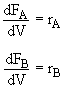 Hint 1: What are the mole balances on A and B and the rate law?