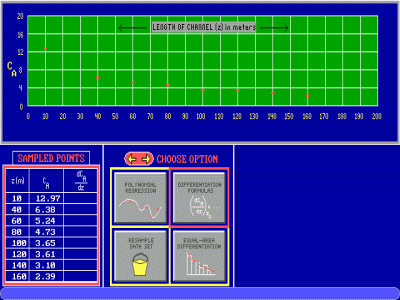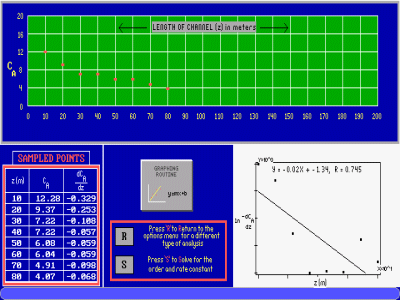 ![]() The wetlands are modeled as a PFR. The student must first develop the necessary reactor design equation for a PFR, then start collecting data. This concentration data (which includes experimental error) is then analyzed in various ways (polynomial fit of the data followed by differentiation of the resulting equation, difference equations, etc.) to determine the rate law, as well as the rate constants and reaction order. Students must determine which points are to be excluded from the analysis (if any) and which points may be resampled: