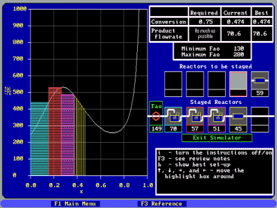 The reactor optimization simulator can also be run independently of the scenario. This allows the professor to present the student with a variety of open-ended problems to be investigated using the simulator. |