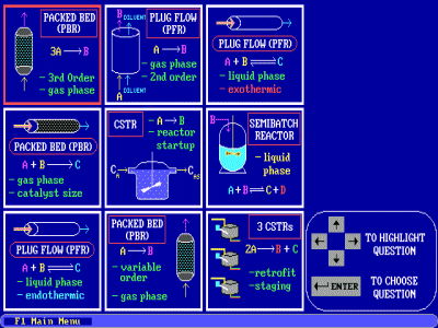 ![]() After performing the “experiments” the student proceeds to answer the questions that examine the effects observed. These effects can be explained through the Ergun, Arrhenius, and Van'’t Hoff equations In many cases, competing effects are highlighted. The square is "won" by answering two out of the three questions correctly. |