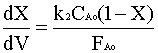 In the Homogeneous Example 1 Solution, we derived the following equation for a CSTR:
