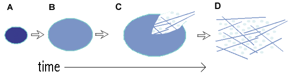 B=Swollen starch granule,