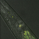 nanoparticles inside worms. Left: Scanning electron microscopy,