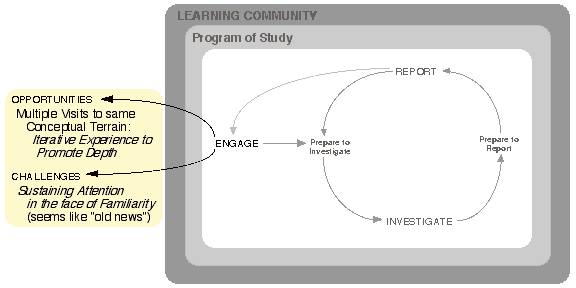 The GIsML Project > Heuristic > Phases of InstructionPhases of InstructionEngaging in the inquiry.The beginning of GIsML instruction involves becoming engaged about a question of phenomenon that one will study, and part of becoming engaged means determining what can be investigated to determine a response to the guiding question. Students and teachers work together to identify and specify events, objects, or ideas that will be useful to investigate in responding to the guiding question. Specific questions guide the inquiry in particular cycles regarding the selected events, objects, or ideas of study. Determining an appropriate specific focus, and making sure that everyone understands the focus and its relationship to the overall topic of study, are important elements of this step. When that understanding is expected (by teachers and students), an important foundation for building conceptual understanding is established.