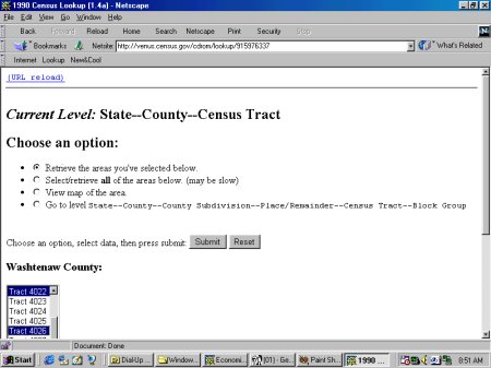 5. Choose "Retrieve the Areas You've Selected Below" and Tract Number. You may choose multiple tracts.
