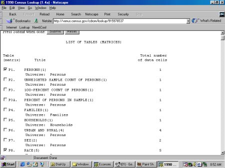 7. Select the data variables by placing an "x" in the box. There are approximately 250 variables.
