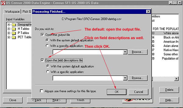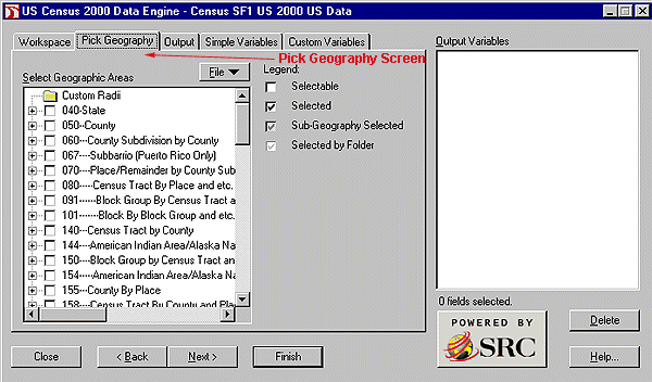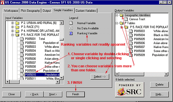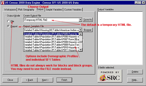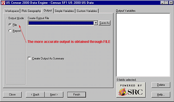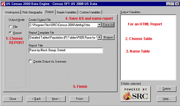 3. CREATE OUTPUT AS SUMMARY option means you will get one total for all of the geographic areas you've chosen (e.g. one figure for all males 5-9 in a combination of 10 block groups rather than a separate figure for each of the 10 block groups). Not used in this example.