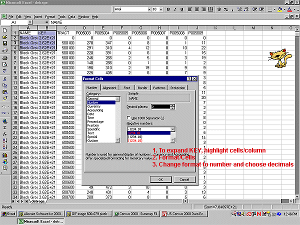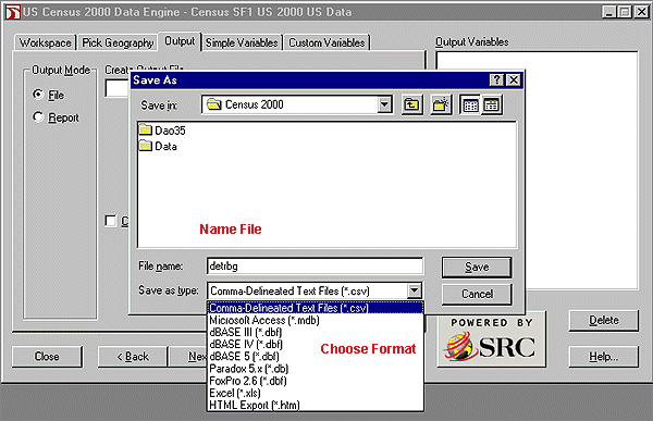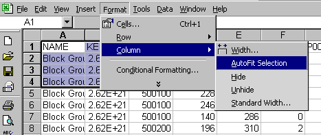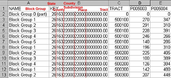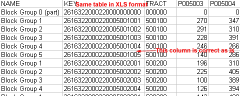 Paradox 5.x (.db)If you plan to use EXCEL, save in .xls format. CSV files imported into Excel display a KEY (geographic identifier) as a scientific number. It does not always display correctly or completely when changed to a general number format.