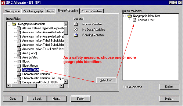 It is usually a good idea to choose geographic indicators for census tracts when the final output is block groups and census tracts plus block groups when the final output is blocks.