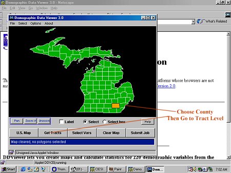 3. Choose County by Clicking on Map 4. Click on Get Census Tracts button