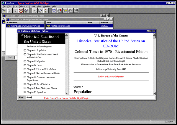 U.S. data on population, industry, foreign trade, education, national accounts, government employment and budgets, elections, and prices between 1789 and 1970. Most statistics are limited to the national level. Notes at the beginning of a chapter cite sources, including difficult-to-find material from the 19th Century. Some colonial statistics. |