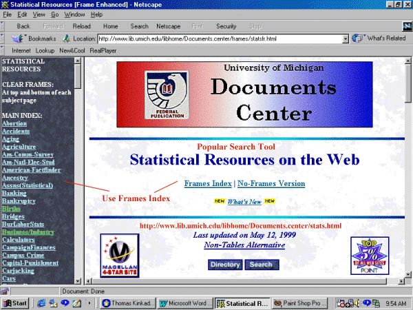 Frames Index Navigates 23 Pages of Data on Most Subjects