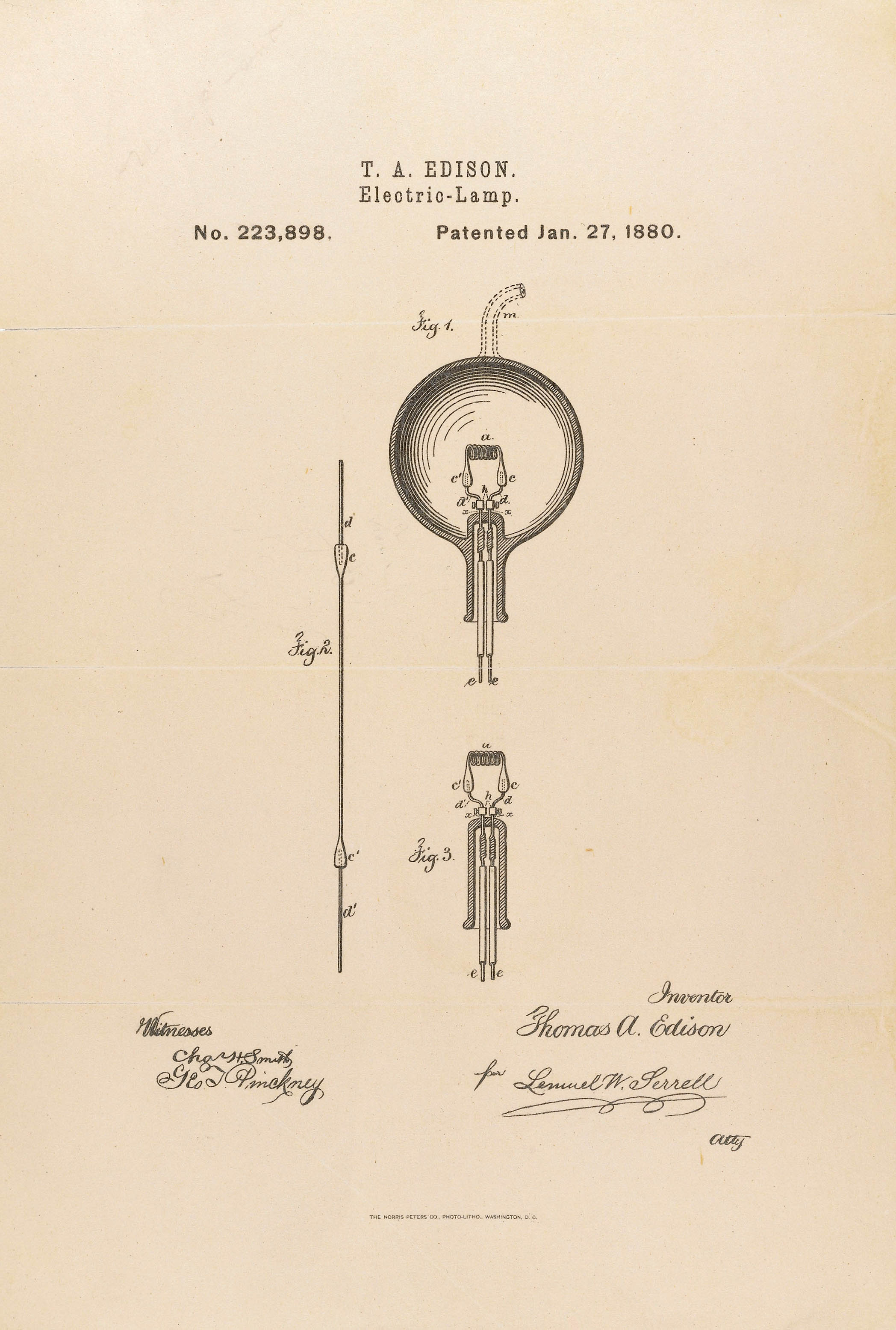 Thomas Edison patented the light bulb on January 27, 1880. His original patent drawings appear in the Official Patent Gazette (Art, Architecture and Engineering Library T223 .A. The Annual Report of the Patent Office, Document 2024 (47th Congress, 1st Session, House Executive Document 62, p. 74-75) lists two pages of Edison patents in 1881.